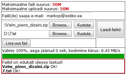 7. Pärast laadimise lõppu saadetakse failide saajale automaatne e-mail.